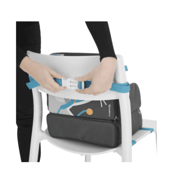 Cu scaunul booster de la Babadulle Nomad copilasul este in siguranta oriunde ati lua masa. Se ataseaza foarte simplu de toate scaunele folosind curelele speciale; una pentru sezut si una pentru spatar.