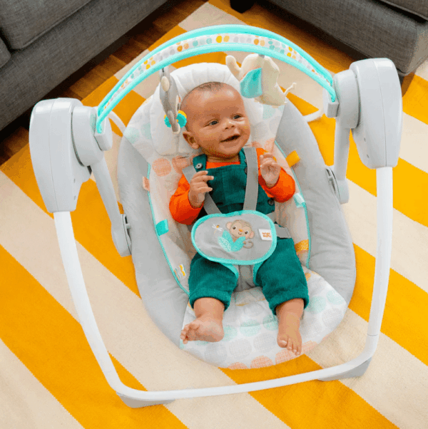 Tehnologia de detectare a greutății menține copilul la viteza perfectă de legănat.