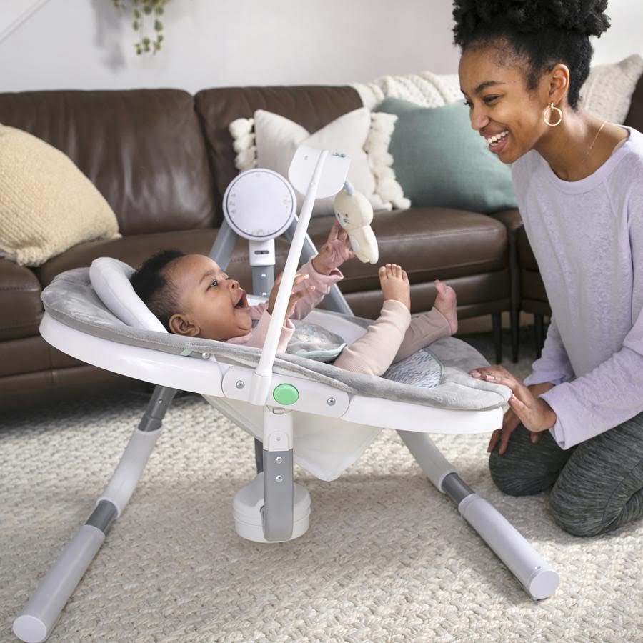 Leaganul portabil AnyWay Sway™ se va transforma in locul preferat de odihna al micutului tau! Leaganul se roteste la 180° si se misca in 3 directii diferite pentru ca parintii sa-l poata supraveghea oricand pe bebelus. Creat pentru a se adapta la nevoile micutilor, leaganul este prevazut cu vibratii si contine o bara de jucarii…
